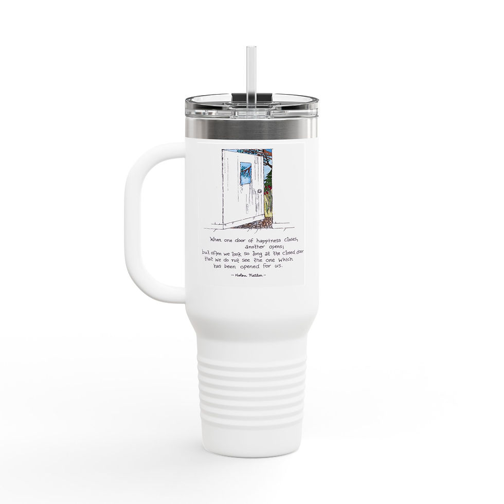 Insulated Travel Mug with Helen Keller "Open Door" Quote