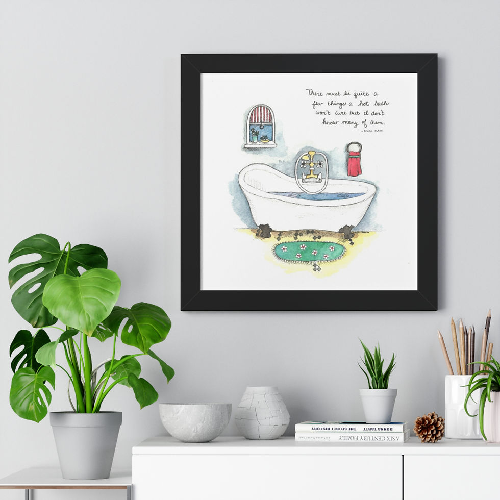 Framed Poster — Whimsical Bathtub Art with Sylvia Plath Quote